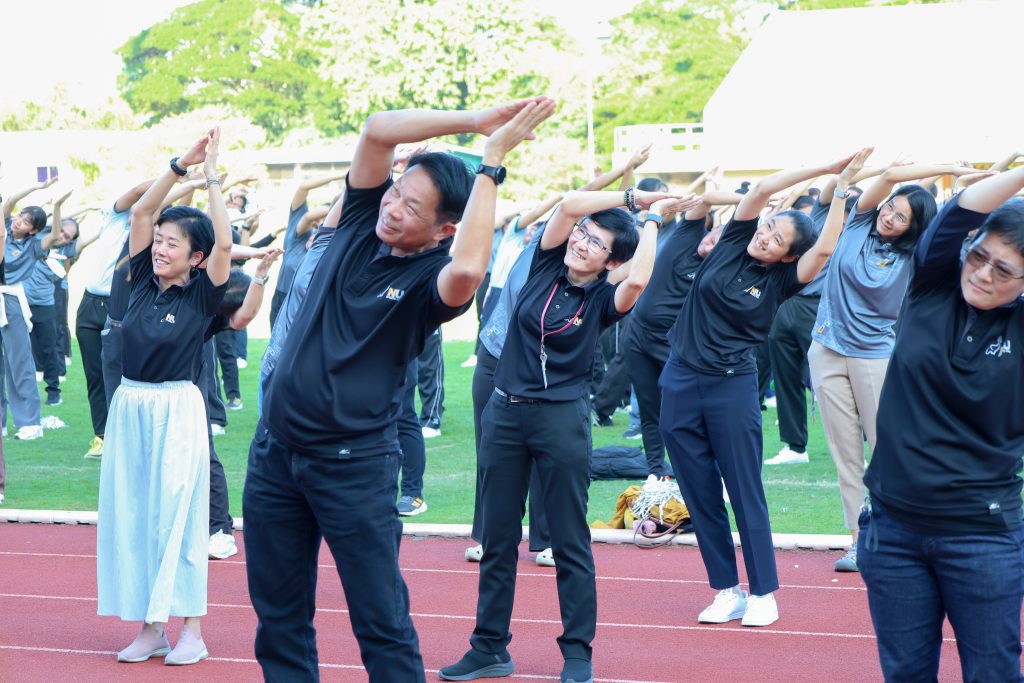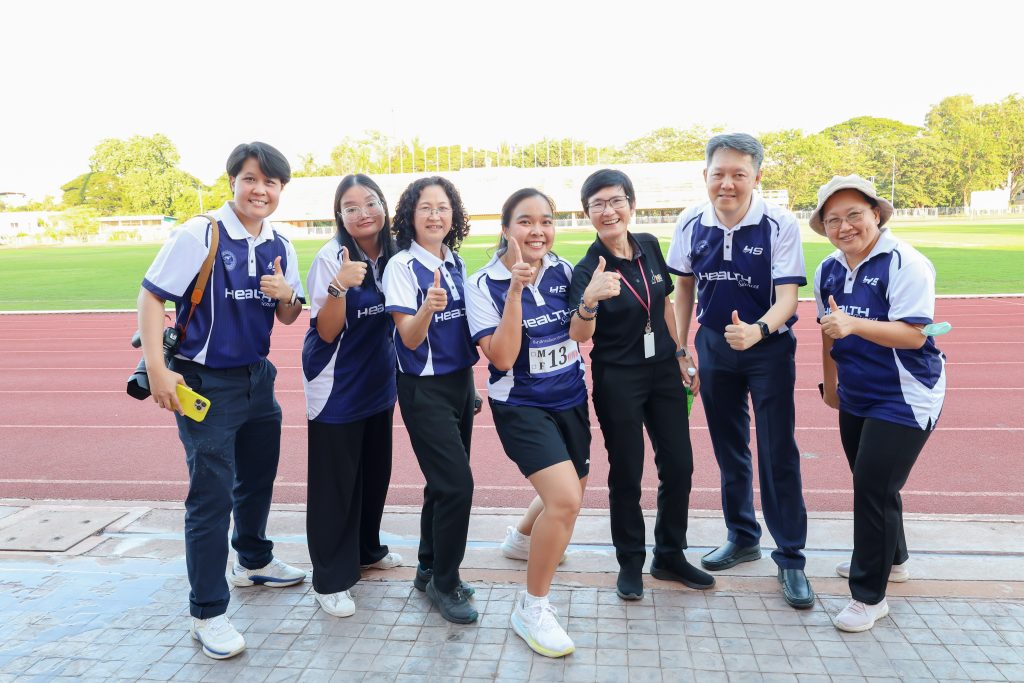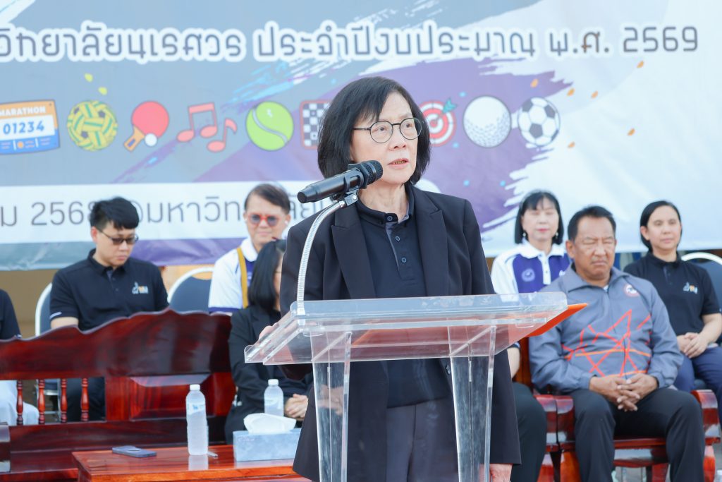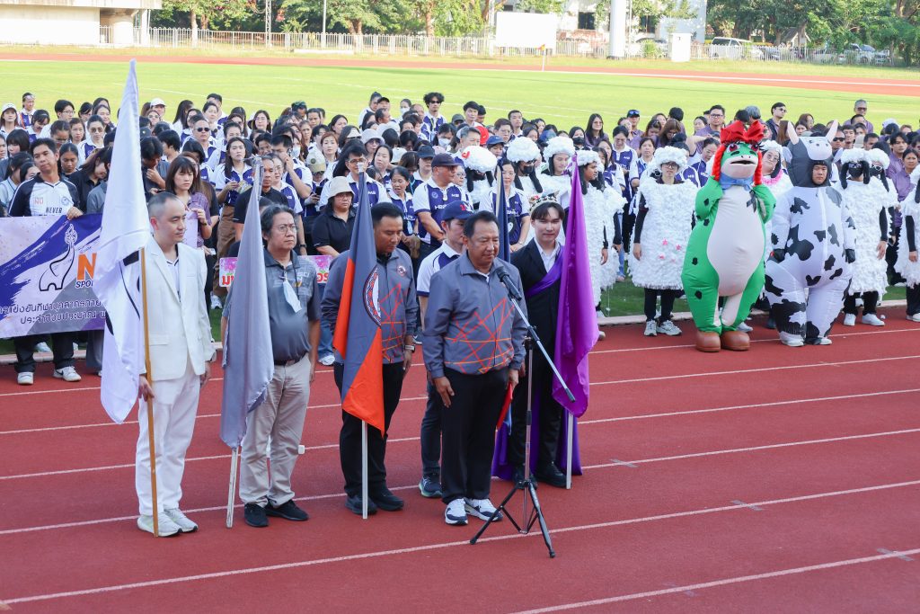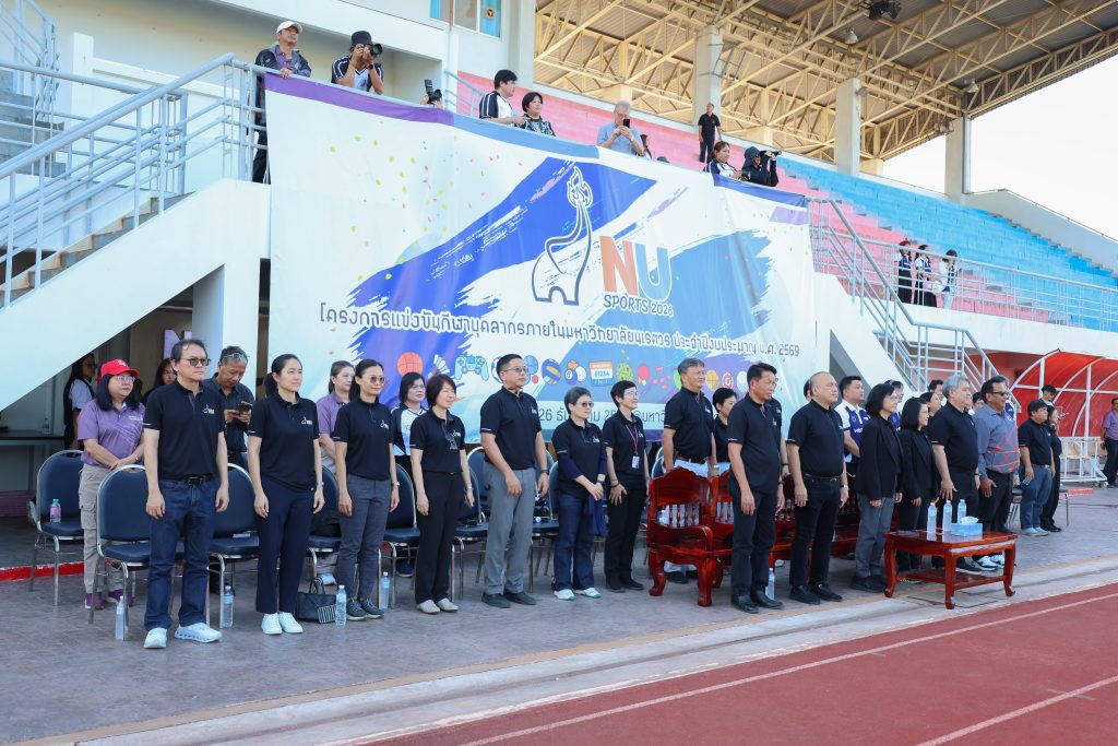 คณะเภสัชศาสตร์ ม.นเรศวร ร่วมพิธีเปิดการแข่งขันกีฬาบุคลากรภายในมหาวิทยาลัยนเรศวร ประจำปีงบประมาณ 2569 วันที่ 22 ธันวาคม 2568 รศ.ดร.ภญ.รัตติมา จีนาพงษา คณบดีคณะเภสัชศาสตร์ พร้อมด้วยคณะผู้บริหาร คณาจารย์ และบุคลากร เข้าร่วมพิธีเปิดการแข่งขันกีฬาบุคลากรภายในมหาวิทยาลัยนเรศวร ประจำปีงบประมาณ 2569 ณ สนามฟุตบอล 1 มหาวิทยาลัยนเรศวร โดยได้ร่วมกิจกรรมออกกำลังกาย (เต้นแอโรบิก) เพื่อเสริมสร้างสุขภาพที่ดีและกระชับความสัมพันธ์อันดีระหว่างบุคลากรภายในมหาวิทยาลัย ในโอกาสนี้ คณะผู้บริหารและบุคลากรได้ร่วมส่งกำลังใจและร่วมแสดงความยินดีแก่ อ.ภญ.โฉมคนางค์ ภูมิสายดร ตัวแทนนักกีฬาของคณะฯ (กลุ่มสีกรม) ในการลงแข่งขันกรีฑาประเภทวิ่ง 100 เมตร หญิง ช่วงพิธีเปิดกิจกรรม ซึ่งสามารถทำผลงานได้อย่างยอดเยี่ยมและคว้ารางวัลเหรียญทองมาครองได้สำเร็จ คณะเภสัชศาสตร์ขอสนับสนุนและเป็นกำลังใจให้บุคลากรทุกท่านในการแข่งขันกีฬาประเภทต่าง ๆ เพื่อสร้างเสริมสุขภาพ